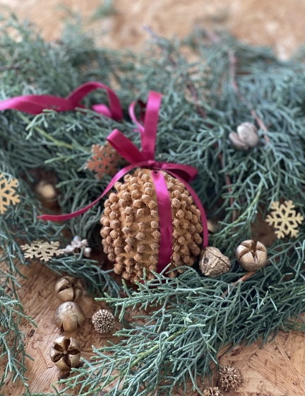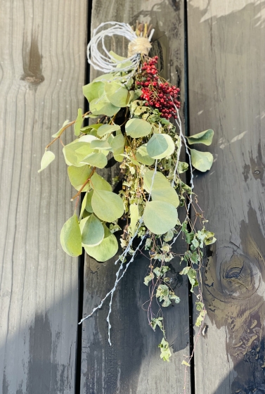 そこに実家の庭で育つ斑入りの野葡萄のドライを