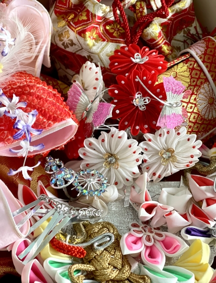 七五三の時の帯や髪飾りなどの