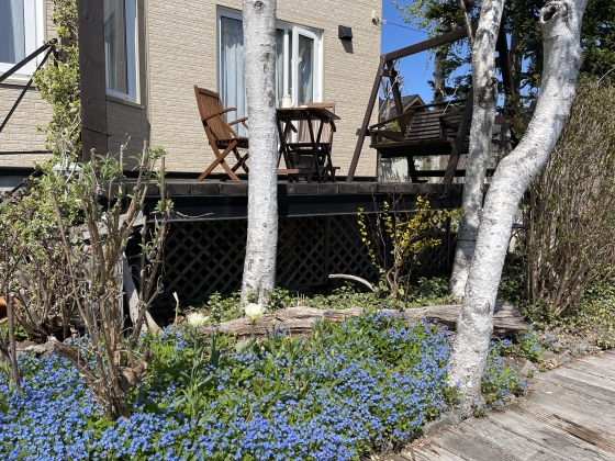 デッキにテーブルと椅子を出しました。