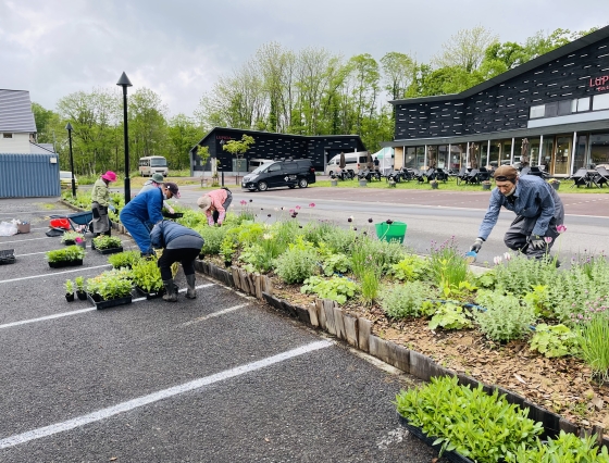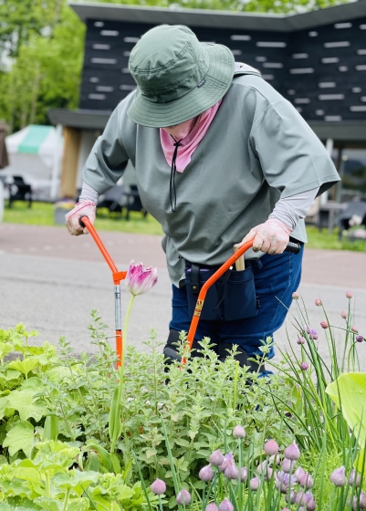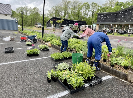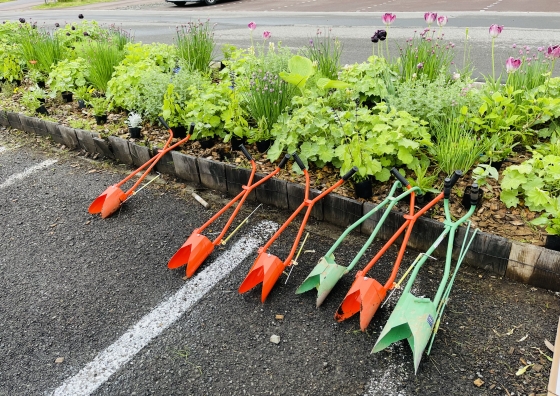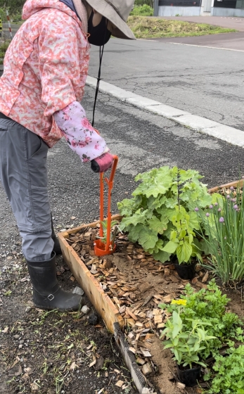 ホーラー名人(笑)、苗の周りの土をしっかり寄せて