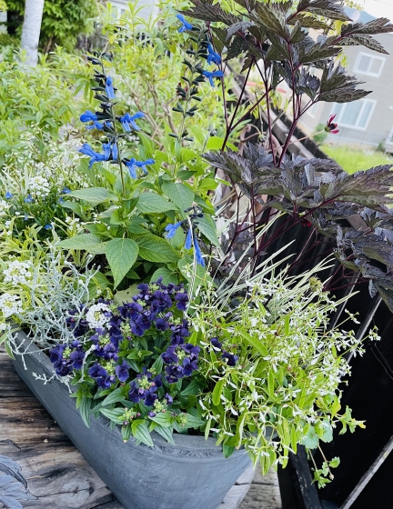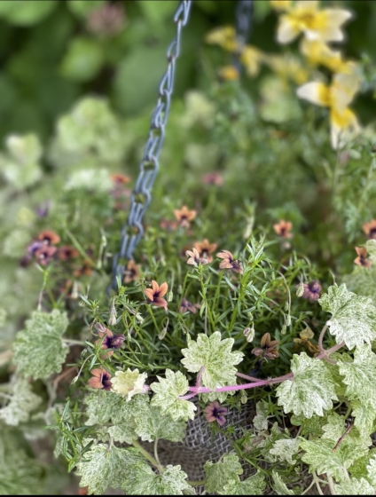 2023年06月14日 06時43分 ブルー系多し 庭の寄せ植えブルー系多し。 こちらはまだ咲いていないのですがモノプシスも入っています。 ふわふわもこもこのイメージで寄せ植え。 このお花、数年前から私の心を鷲掴み!特にこのレンガ色。霜が降りるまでよく咲きしかも暑い時期には半日陰がよいので我が家の庭にピッタリです。 ねぇ、可愛いいでしょう笑 昨年はもみじの木の下でハンギングに使いました。 ここ数年、自宅庭用の寄せ植え愛がなんとなく減っていましたが今年は盛り返している。。。 やる気を充電して満タンになったかな。 コメント(0)