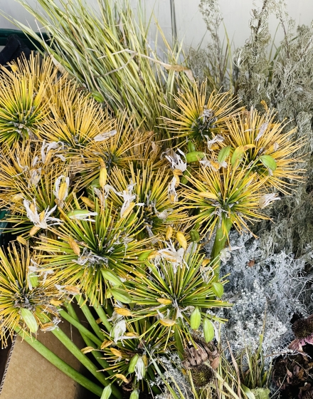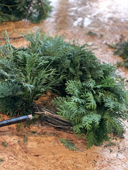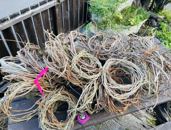 2023年10月10日 06時38分 リース準備 リース、スワッグの製作準備をしながら作り始めました。 黄色いシードヘッドはアガパンサス。かわいいですよね。 空いた時間にひたすら蔓を巻き土台作り。 必要な数の半分くらいしか終わっていない汗 頑張らなくては。 松ぼっくりはお日様にあてて乾燥させます。 まずはヒバの土台作り。 ちゃんと指が巻き方や力加減を覚えていてホッと一安心。 ひたすらベースを作り続ける日々です。 コメント(0)