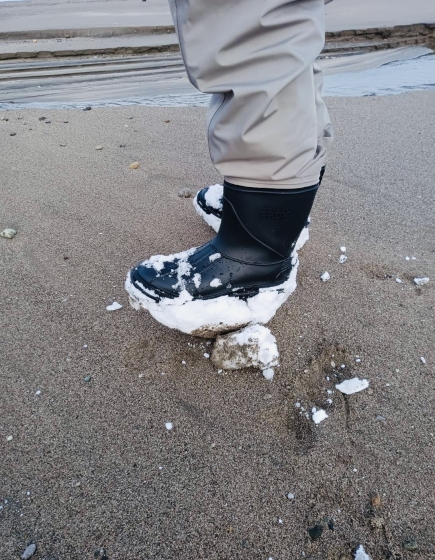 しみこんだ水分が凍りつき雪がくっついて、、、