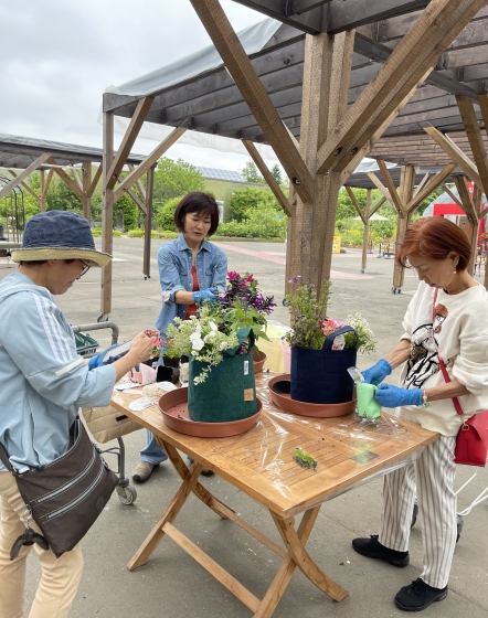2024年06月17日 07時03分 寄せ植え講座2回目 花のまきばで2回目の寄せ植え講座でした♫ リピーターの方が多い寄せ植え講座、みなさん和気藹々と楽しまれながらサクサク植え込みされました。 摘芯の意味、方法、植物の成長するための優先順位や追肥の種類や活性剤など秋まで長く楽しむかりの流の方法をみなさんにお伝えしました〜 みなさまご参加ありがとうございました♪ コメント(0)