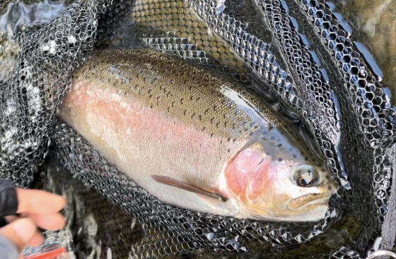 こんなに浅くて大きなマスが泳ぐのは難しいような