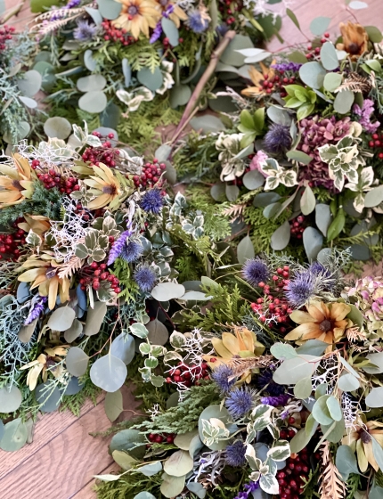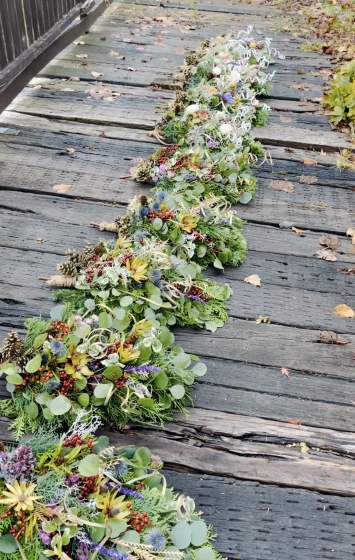 2024年11月14日 07時02分 スワッグ作り 納品用のスワッグをひたすら作り続けていました。 ようやく目処がついてホッとしました。 リースはあと教会用のみとなりました。 さとらんどでのスワッグ講座の申し込みは 定員を上回り枠を増やして満席となりました。 いつもたくさんのみなさまの申し込みをいただき、ありがとうございます。 コメント(0)