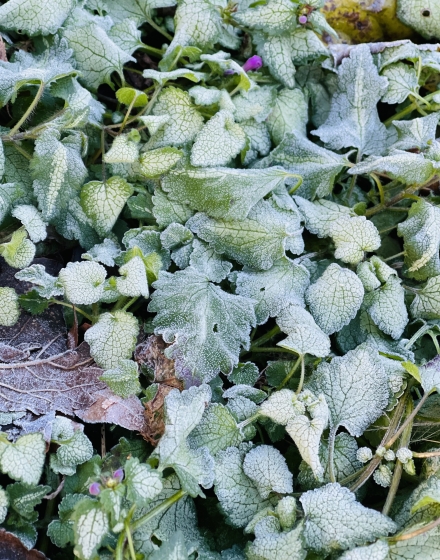 2024年11月15日 07時22分 霜 マイナス気温予報の朝、霜が降りていました。 ラミウムが美しい姿。 先日の雪が積もる前に裏庭からつんだミントを一輪挿しで愉しんでいました。 触るといいかおりがしてにっこりできる♬ 根がたくさんのびてきました。 置かれた環境で文句も言わず前向きに知恵を絞り生き抜こうとするそのパワーがすごいです。 植物の、どの部分で考えてきめているのか永遠の謎。。 コメント(0)