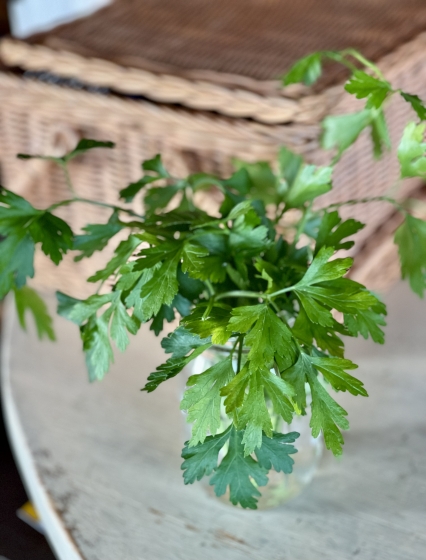 2024年12月06日 07時43分 日常 リースやスワッグ製作が終わり2階の工房を片付け 居間でボーっと過ごす時間ができました。 青空の日は心が軽くなる初冬です。 いただいたトルコキキョウはまだ可憐に咲いてくれています。 雪が積もる前に庭から摘んだイタリアンパセリ。水に挿してあります。 コールスローサラダに使うのがマイブームです。 あの子たちに話しかける時間もあります。 壁にもあの子達がいます。 一緒に山に行って雪遊びをしていた頃を思い出します。 コメント(0)
