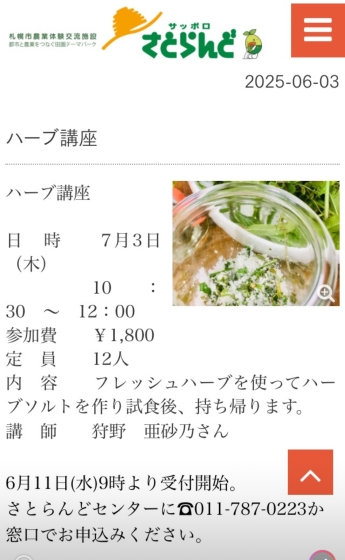 2025年06月09日 06時23分 庭のパワー 釣行旅から戻ると庭のハーブたちの成長が著しいです。 庭のハーブたちは35年無農薬栽培です。講座に登場する素材にもなります。 来月さとらんどでハーブソルト講座です(^^) お申込みは6月11日スタートです。 フレッシュハーブで仕込むハーブソルトの魅力を一緒に楽しみましょう♪ 簡単な試食もご用意する予定です。 コメント(0)