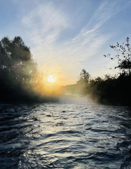 日の出頃の川は