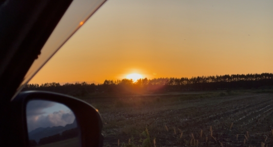 帰りの車中から見えた夕陽は