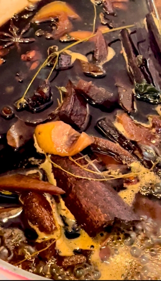 あらたにハーブを加え煮込む