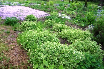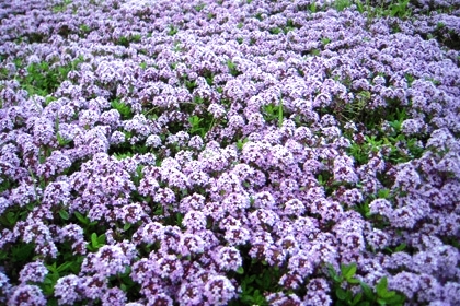 タイムを敷き詰めてじゅうたんを作りました。素足で寝転がるとタイムのよい香りがします。